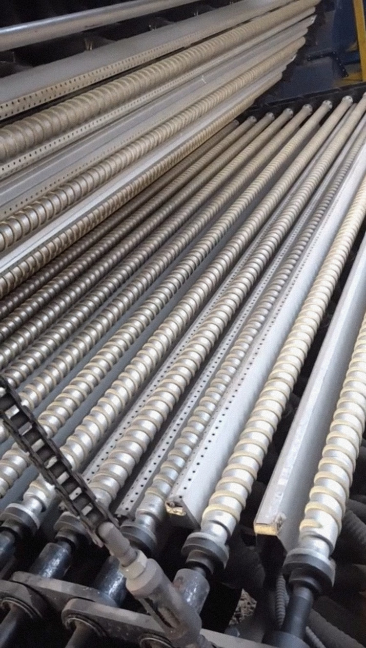 Węże aramidowe są owinięte na rolkach pieca hartowania, aby ułatwić szybki transport szkła o wysokiej temperaturze.Po podgrzaniu szkła w wysokiej temperaturze w piecu hartowania, jest szybko chłodzony przez sieć wiatrową,i linia rolkowa Kevlara może skutecznie chronić szkło o wysokiej temperaturze przed kontaktem z metalowym stołem rolkowym o niskiej temperaturze bez zimnej eksplozji i żadnych zadrapań.